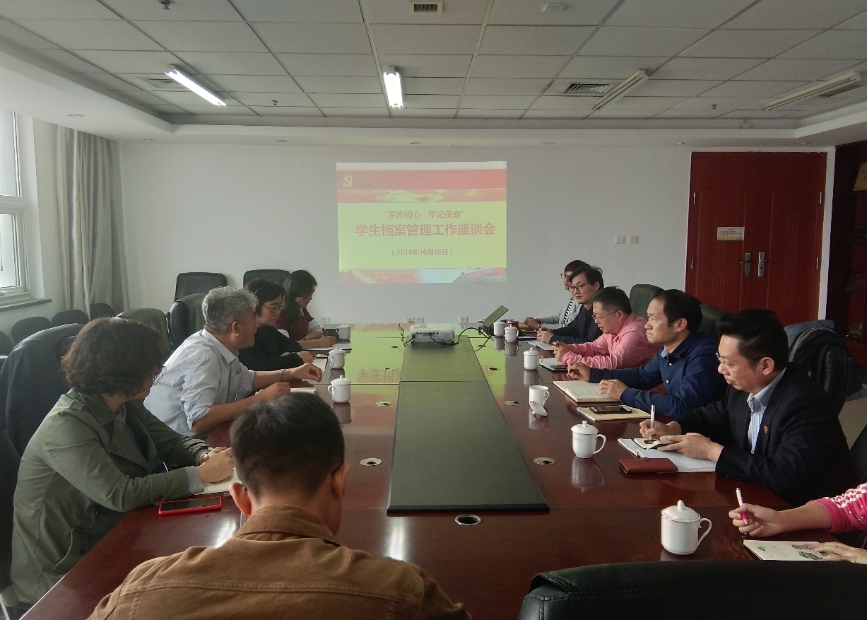 10月23日下午,365best体育亚洲官网档案馆董金明馆长一行四人就365best体育亚洲官网档案管理工作进行座谈会,座谈会在节能楼301会议室举行。365best体育亚洲官网党委书记商植桐、院长沈伯雄、党委副书记兼副院长王敏达、科研副院长闵春华,团委书记李辉及各年级辅导员老师参加了此次座谈。