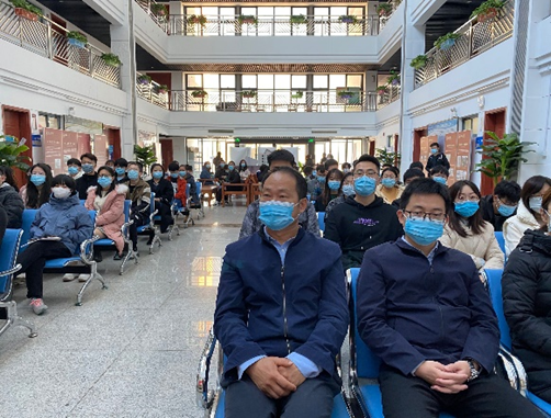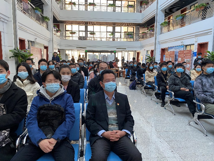 11月12日上午365best体育亚洲官网在节能楼二楼大厅组织全院80余人师生党员代表观看十九届六中全会精神解读新闻发布会,其余师生党员在线上自行观看。