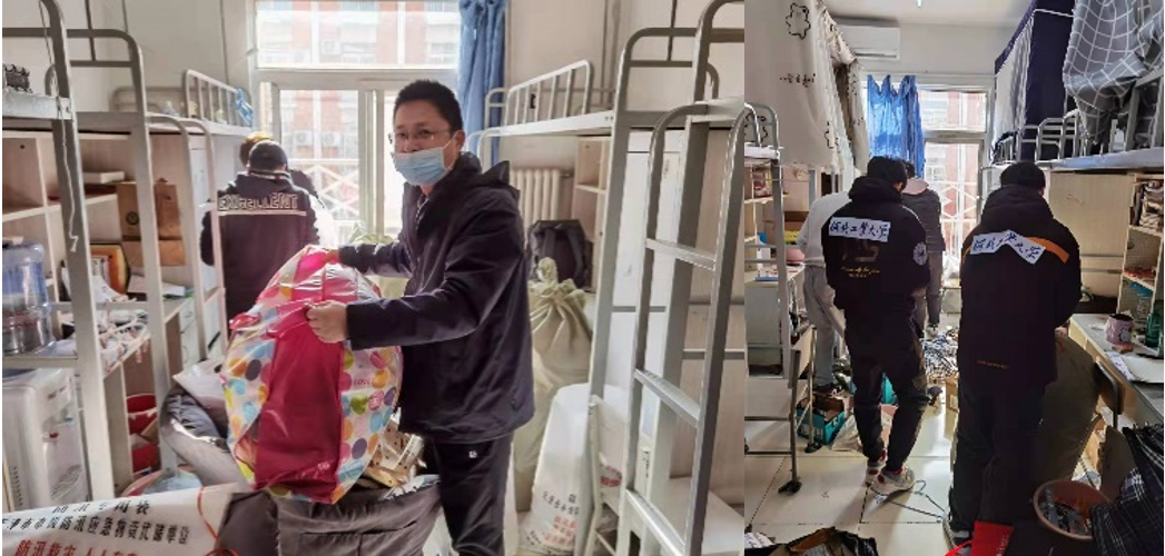 1月16日,学校招募志愿者老师带队前往宝坻大学城搬运行李,为抗疫服务,支委郭盛祺老师第一个报名参加。第二天早上五点多到校集合,郭老师不到四点就要起床,开车到校带领66名学生志愿者出征。