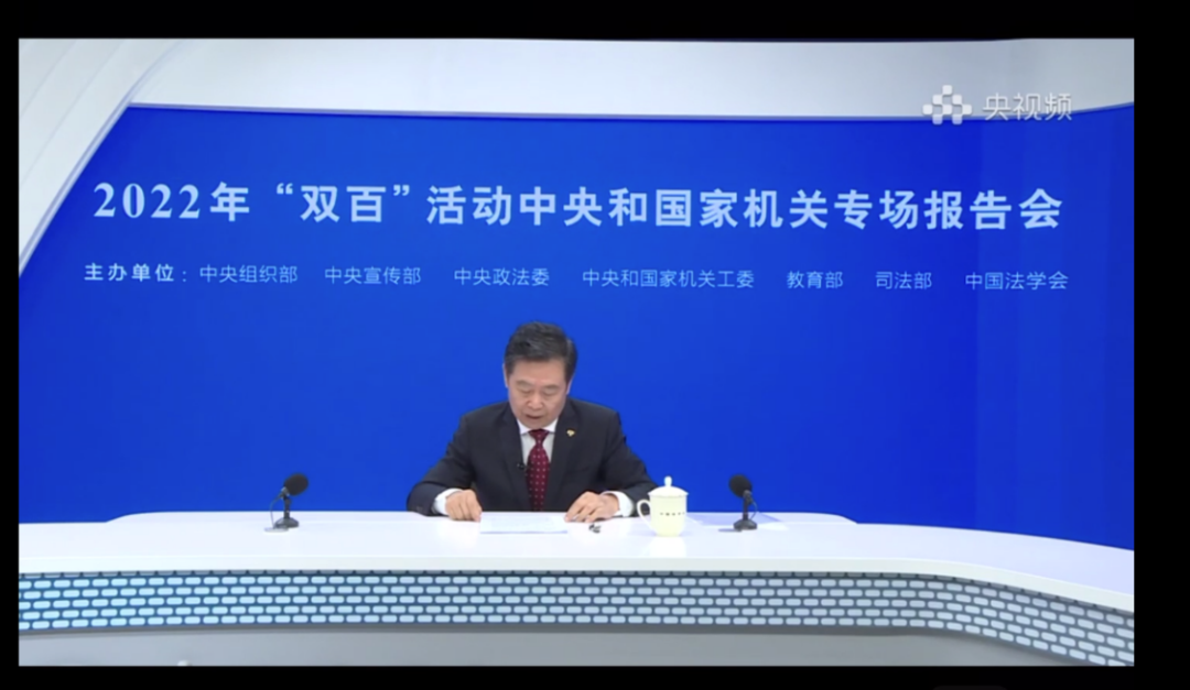 7月22日上午10时,由中组部、中宣部、中央政法委、教育部、司法部和中国法学会6部门联合举办的2022年“双百”法治宣讲活动在人民网举办网络直播活动。365best官网动力学硕党支部在支部书记杨楠楠同志带领下积极响应党的号召,开展暑期党日活动,积极组织支部人员通过线上和线下结合的方式进行收看。