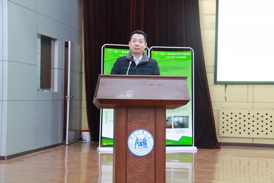 夏国强老师进行了备赛指导和经验分享。夏老师认为参赛作品应具有节能 、合理、实用、创新、亮眼的特点。夏教授强调项目一定要体现节能减排的主题,队伍的组成一定要合理,分工合作,学科交叉。不要过分追求技术,简单实用很重要。