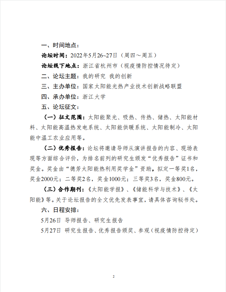 第十二届太阳能热利用科学技术研究生论坛 征文通知