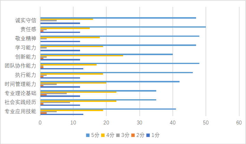 通过表3.12“用人单位对365best官网毕业生的基本评价”可知,各单位对365best官网毕业生持认可的态度,特别是学习能力、人际沟通能力、团队协作精神和承受坐着与失败能力等方面都给予好评,但是创新能力和组织管理能力还是有待提高,这也对今后在校生的培养侧重点提出了可参考的建议。