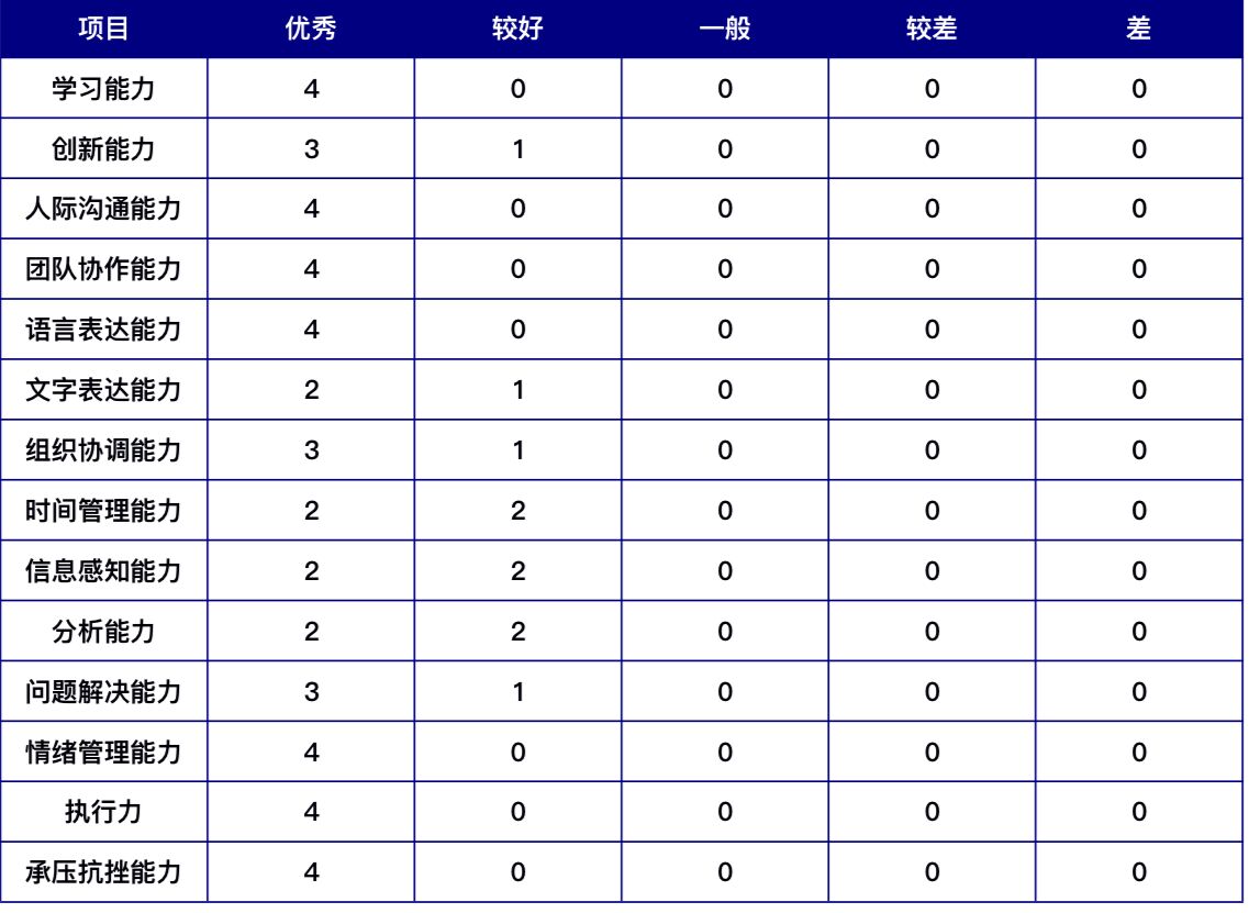 365best官网联系了4家用人单位进行了网上问卷调查,这4家用人单位主要为中小微企业和民营大型企业等,数据显示,参与调查的用人单位对365best官网毕业生满意度较高,在“您对近年来到您单位工作的我校毕业生感到满意吗?”调研中,回答“很满意”的有3家单位,“满意”的有1家单位,对“我校毕业生对所承担工作任务的完成情况”表示满意,认为365best官网毕业生在自己单位“取得较大成绩,做出一定贡献”或“有一定成绩”,并基本能够在本单位安心工作,且与身边同事相处“十分融洽”。总体而言,365best官网毕业生在用人单位表现为“安岗敬业”、“好学上进”、“踏实肯干”。