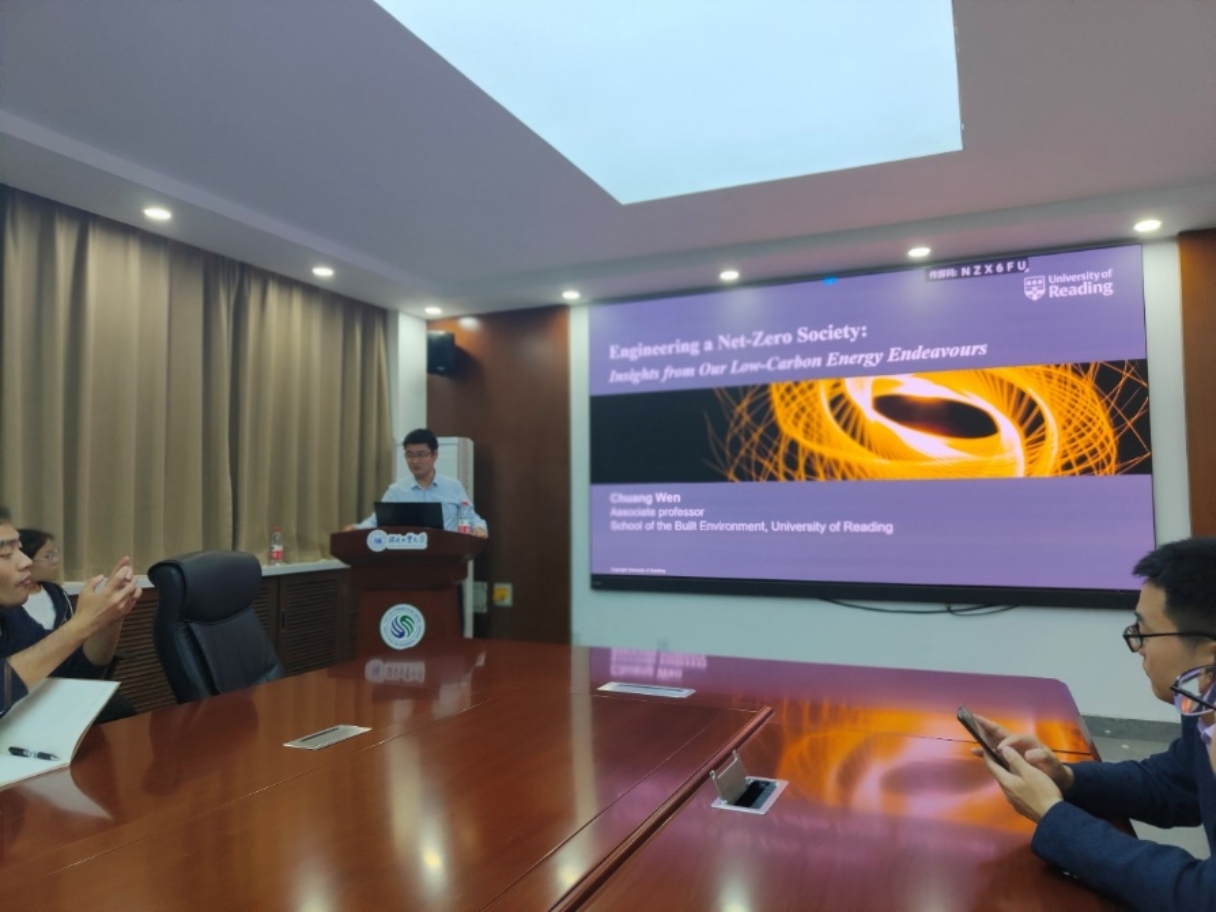 2023年10月23日,英国雷丁大学文闯教授受邀来365best官网,在学术报告厅作了题为“Engineering a Net-Zero Society: Insights from Our Low-Carbon Energy Endeavours”的学术报告,能源与动力工程系部分教师及研究生参加了报告会,会议由学院院长饶中浩教授主持。