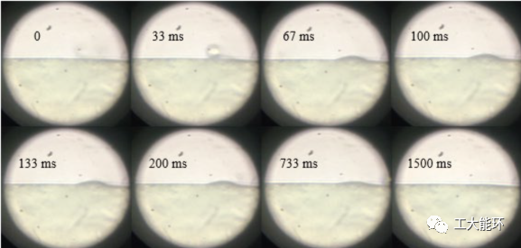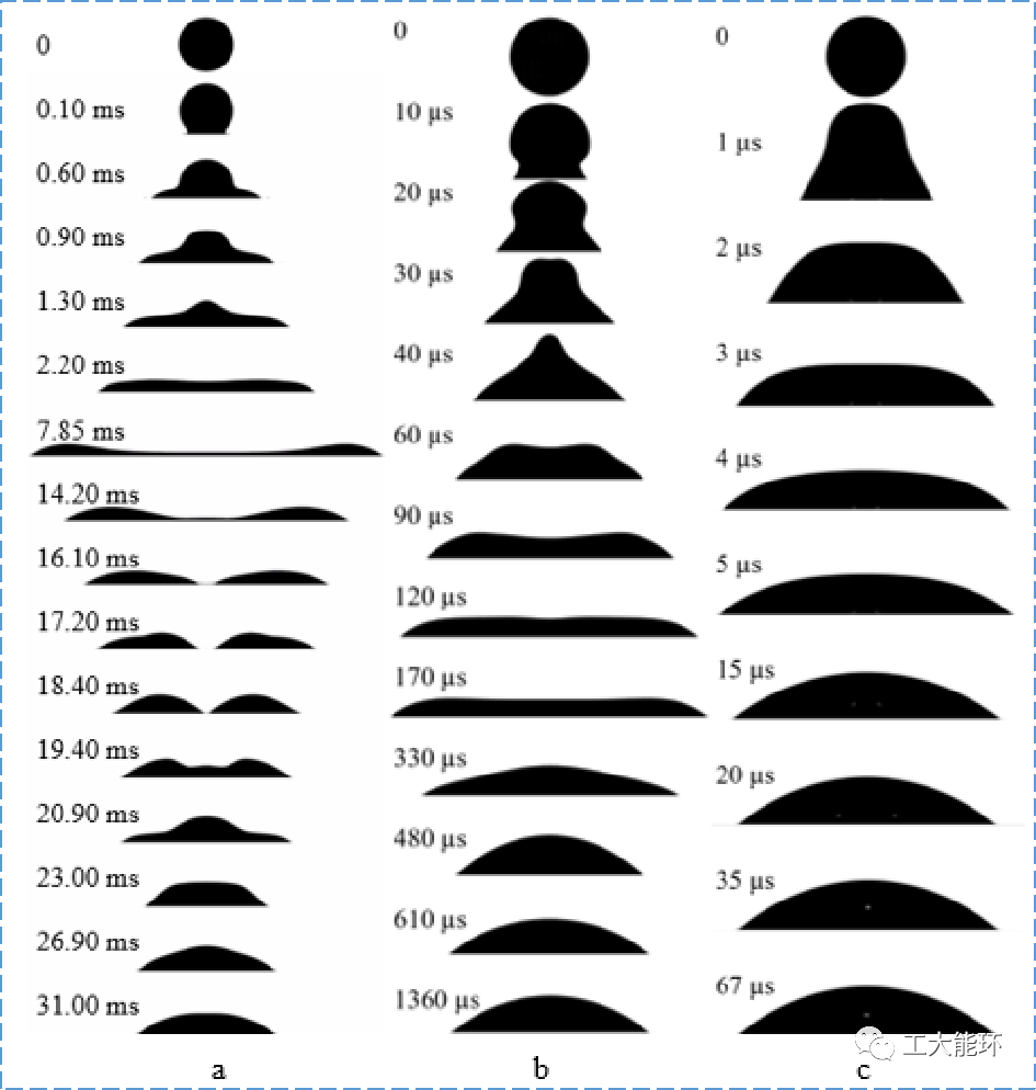 试验结果表明,10μm量级的液滴撞击玻璃后不会直接粘附,而是先在玻璃表面滚动,即动量方向发生变化,然后在某一位置铺展,随后蒸发所以液滴撞击壁面过程分为滚动、铺展震荡、准静态蒸发三个阶段。