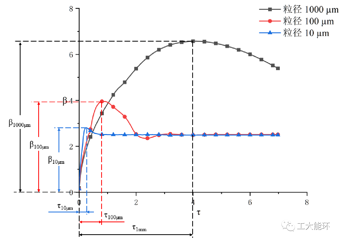 图5 不同粒径量级液滴无量纲铺展直径随总体无量纲时间的变化曲线图