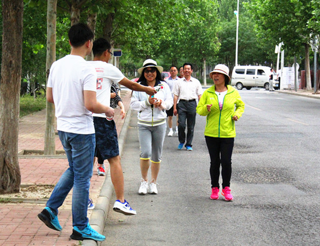 5月27日下午,伴着徐徐的清风,365best体育亚洲官网工会在节能楼北广场举办了一场别开生面的活动。40余名工会会员集体出发,2人一排,在工会会旗的引导下沿预定路线迈开矫健的步伐,绕校园健步行走一周。会员们健步如飞,笑声朗朗,绝大多数在四十分钟左右完成了“微型马拉松”5公里的路程。吴晋湘教授一举夺得了第一名的好成绩。