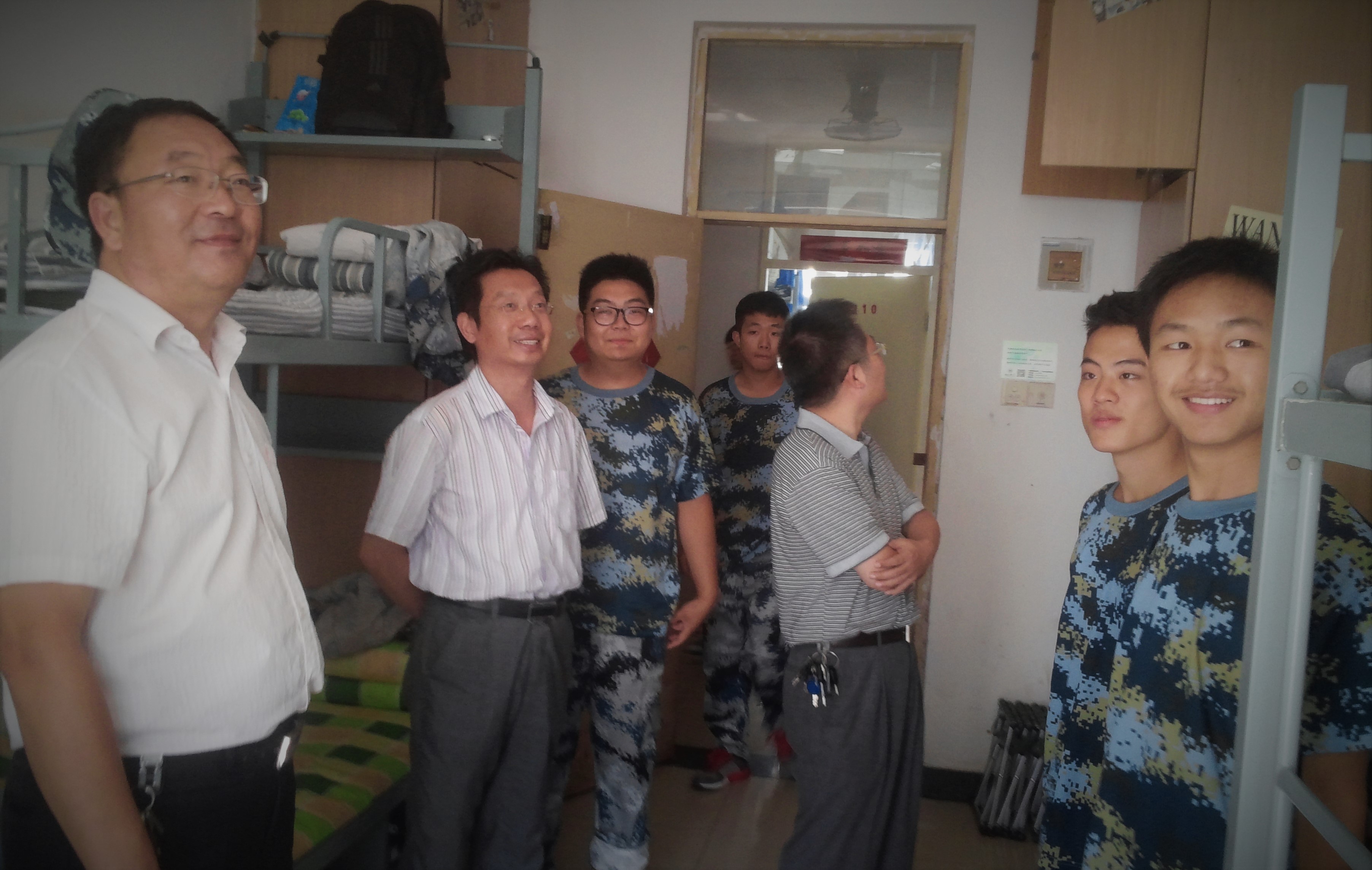 学院党委副书记王敏达陪同党委书记林艳书、院长沈伯雄一同慰问2016级新生,林书记亲切的询问学生的家乡、风俗和入学的感受,嘱咐同学有困难找学院,学院学校就是同学的家,叮嘱同学军训期间坚持训练的同时注意身体,加强学习,尽快适应大学自觉自主的学习方式,四年后取得自己满意的成绩。