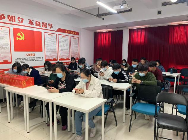 随后通过党史知识竞赛对党员们的学习成果进行检验。党史竞赛通过雨课堂进行线上答题。通过“学治国理政,庆祖国华诞”党史竞答活动,师生们深刻感悟习近平总书记领导党和人民应变局、开新局的伟大实践,深刻领悟学习贯彻马克思主义中国化的最新成果。