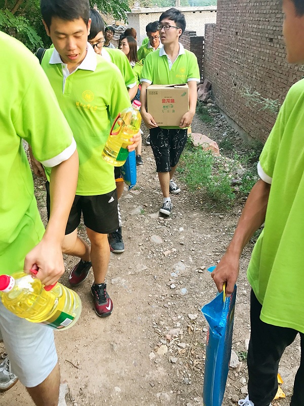 365best体育亚洲官网的同学带着物资看望了学院多年来一直资助的冯相博一家,并和徐水爱心人士一起,顶着烈日,走街串巷,深入了解贫困户家中情况,将助困物资送到他们手里。