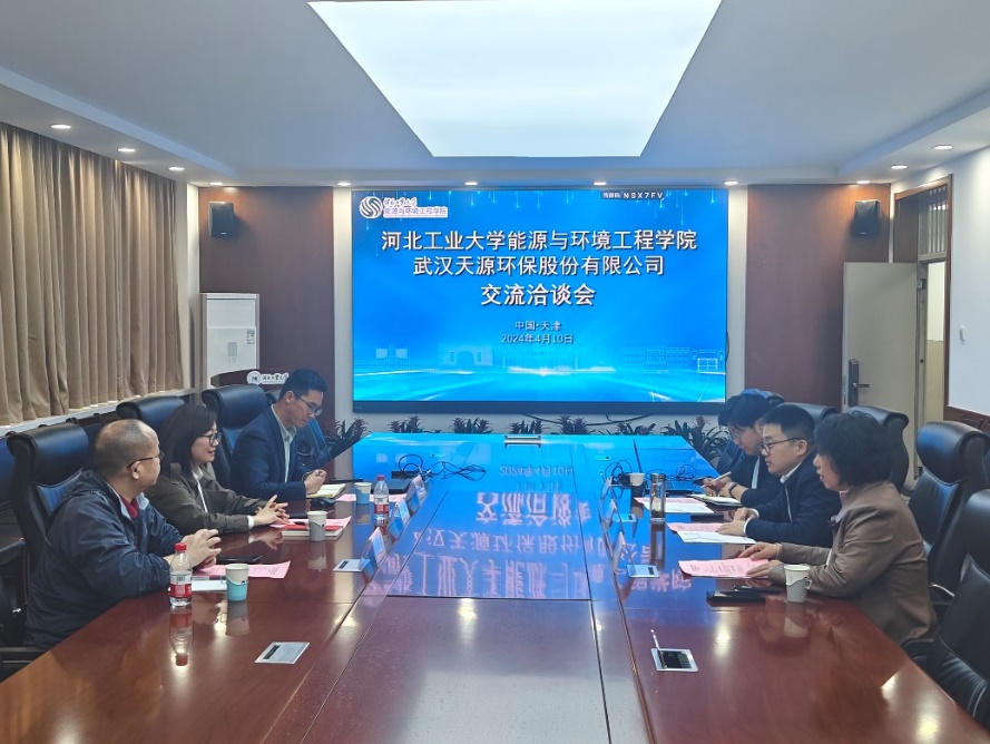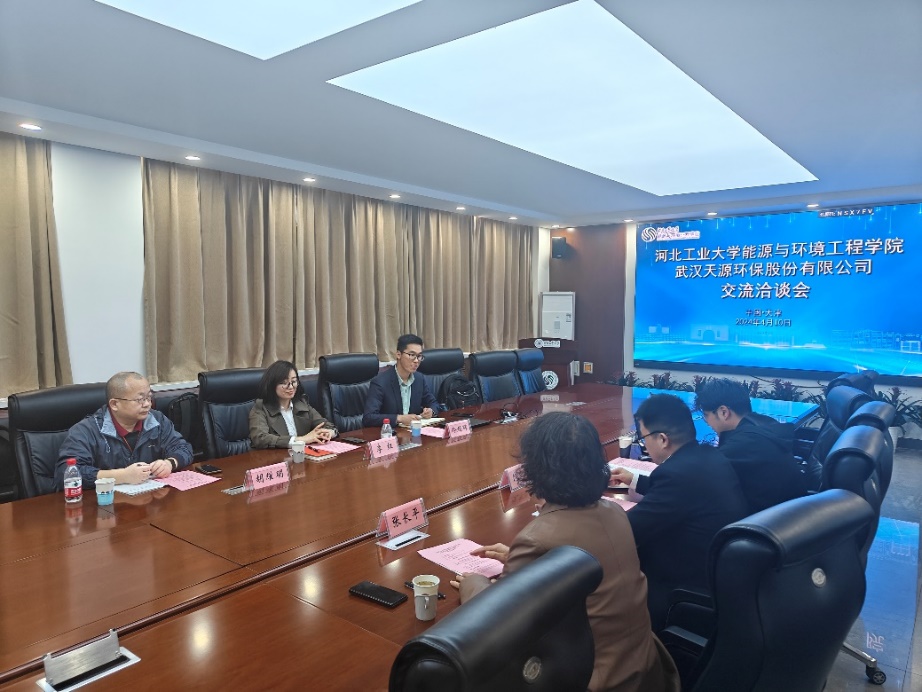 饶中浩院长首先对李红副总裁一行来学院交流表示热烈欢迎,并介绍了学院概况、科学研究、人才培养和服务社会等情况。他表示学院将积极推动与武汉天源环保股份有限公司的深入合作。李红副总裁介绍了武汉天源环保股份有限公司发展历程、业务范围和发展前景等基本情况,并表达了在环境治理与储能技术方面的合作意愿。
