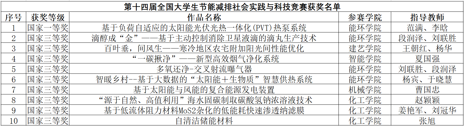 附:第十四届全国大学生节能减排社会实践与科技竞赛获奖名单