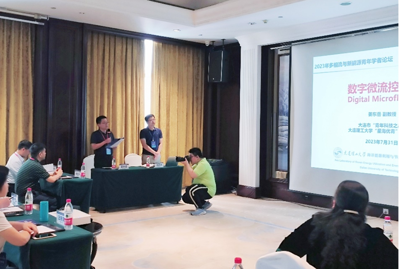 会上新能源与储能技术研究所学术带头人饶中浩教授受邀担任气液两相流(二)分会场主席。另外,在多相反应流分会场,岳远贺老师做了题为“喷动流化床内气固混合效率提升”的学术报告,向大家介绍了关于喷动流化床混合效率提升方法及其在储能颗粒封装的应用前景;在气固两相流分会场,杨柳老师做了题为“超弹性球体与入水空泡的双向耦合研究”的学术报告,针对入水降载问题,汇报了超弹性体入水过程的结构体变形行为与空泡的耦合规律及机理。