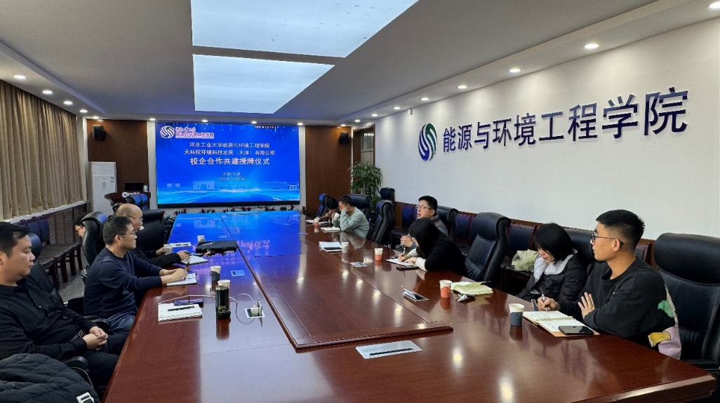 为深化产教融合,推进学校专业建设及人才培养模式改革,12月6日下午,365best体育亚洲官网与天科院环境科技发展(天津)有限公司校企合作共建授牌仪式在西教五307举行。学院党委副书记副院长张茜茜,学院副院长、水污染控制研究所所长任芝军,水污染控制研究所副所长吕龙义,环保设备工程系副主任高文芳,水污染控制研究所刘晓阳、孙丽和梁劲松,以及天科院环境科技发展(天津)有限公司代表参与此次授牌仪式。