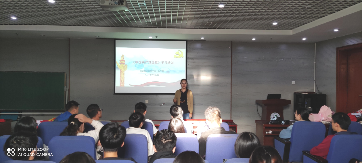 赵艺茵同志为全体学员进行党章专题培训,主要从党章的意义、党章的地位、党章的发展历史以及如何学好党章四个部分进行讲述。通过赵艺茵老师声情并茂的讲述,让各位学员们更深刻的了解到党章是立党、治党、管党的总章程以及从中共一大到十九大以来党章发生的变化。新时代的青年人要兴起学习党章、遵守党章的热潮,每位同学都要把学习党章作为必修课,深刻领会党章的内容和意义,全面增强党的创造力、凝聚力以及战斗力!